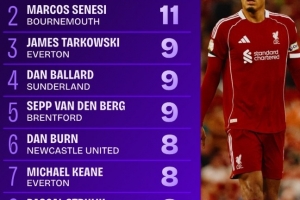 score电竞-英超首轮解围数TOP10:范迪克17次居首,伯恩茅斯后卫塞内西次之