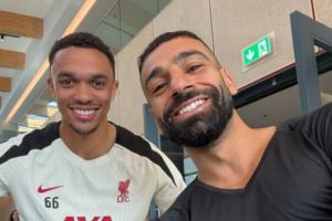 体育资讯04月23日讯 利物浦球星萨拉赫刚刚在个人社交媒体晒出一张照片,是他和阿诺德在训练基地的合照。